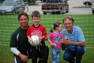 Game was great. Nene, Grandpa and Uncle Jay came to cheer like crazy with me. Matt did great and his teammates did well too. They are getting the hang of it. Unfortunately we did not score but we'll try next time. Matt got so close to scoring and I was on the sidelines trying to kick it in for him but apparently that doesn't work! Here's Matt's #1 fan...